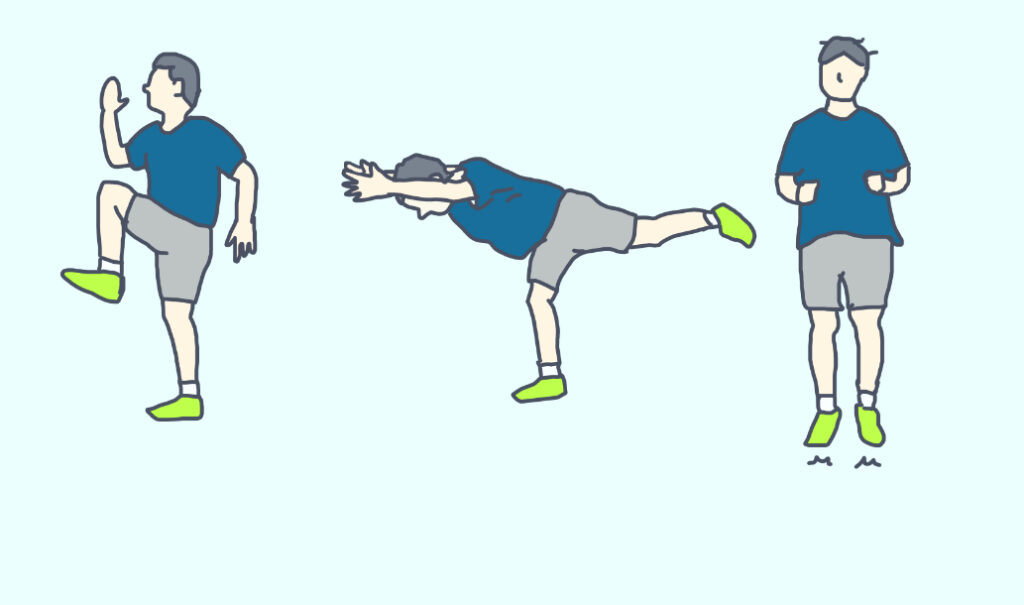 上記のような片脚で身体をささえる系のウォームアップなどがお気に入りです。