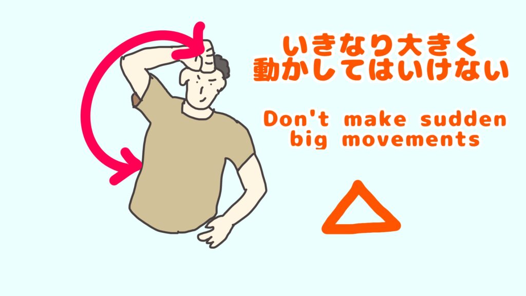 反対側の手で肩を抑えて、関節の動きをコントロールしながらゆっくりと行うことが推奨されます。